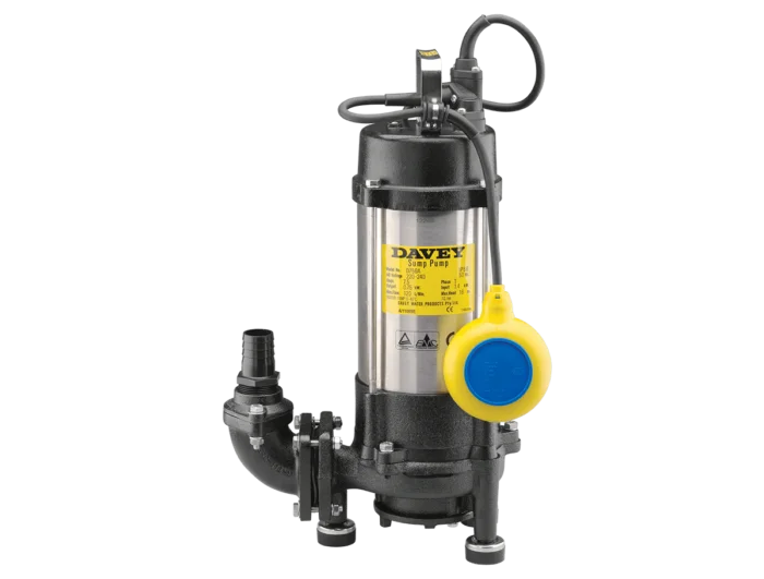 Davey submersible Grinder pumps consist of a solids handling grinder inlet with a high head open impeller to pump wastewater containing soft solids in suspension. Suitable applications include grey and black water pumping, sump emptying, septic effluent and raw sewage disposal, and pumping wastewater with soft solids in suspension.